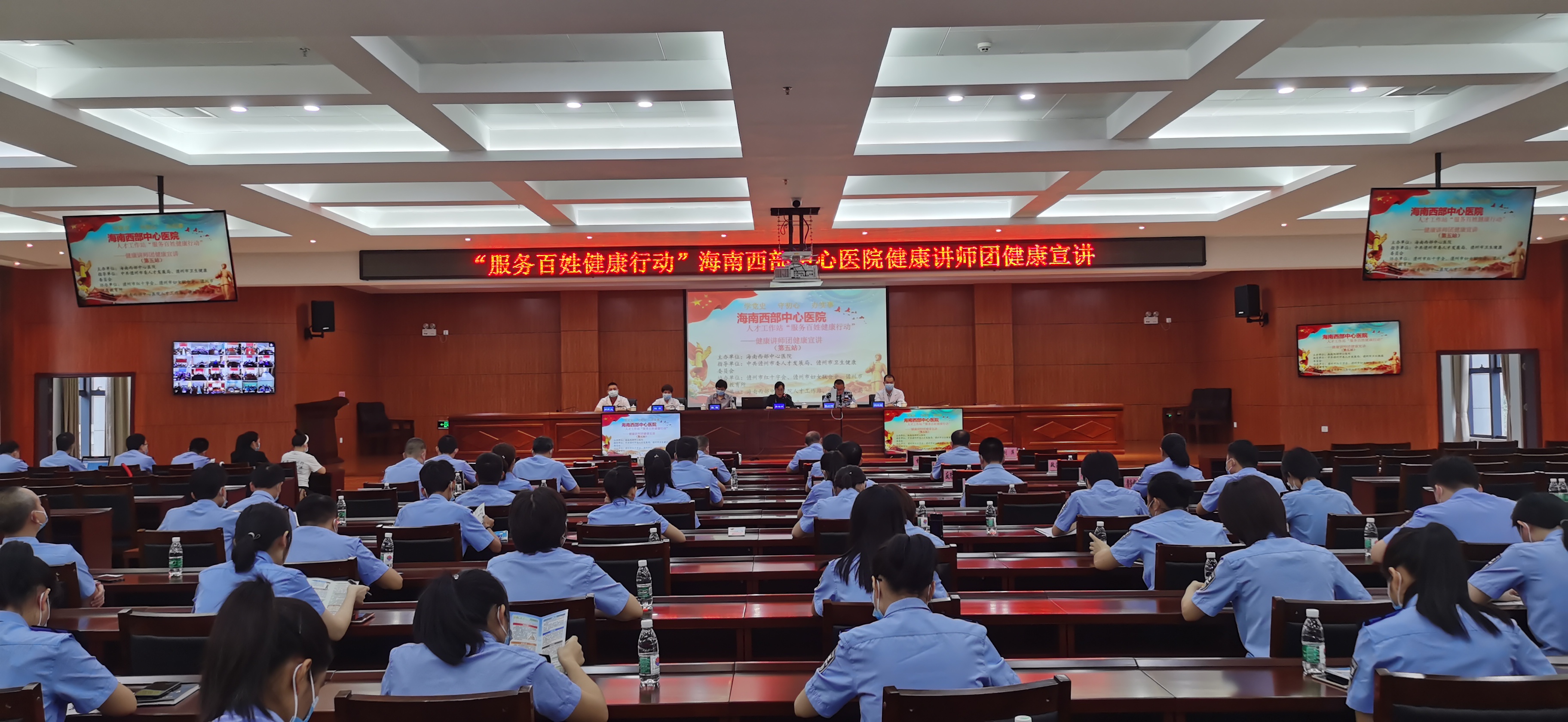 心系公安干警,服务百姓健康。10月29日,为提高儋州市公安干警的健康卫生意识和加强健康管理,将为民办实事落到实处,“服务百姓健康行动”——海南西部中心医院健康讲师团在市公安局开展第五站健康宣讲,活动由市公安局政治部副主任汪小峰主持,市卫健委四级调研员周春丽出席活动并致辞,市公安局党委委员、副局长吴靖全程参加。