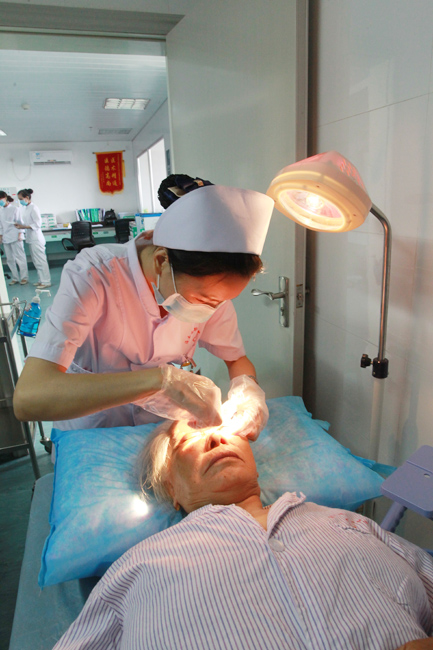 护士为白内障患者手术后进行护理